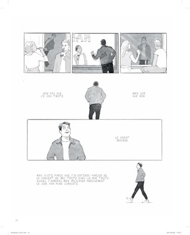 Le dessin joue beaucoup sur l’atmosphère : scènes urbaines détaillées, cafés et bars saisis avec réalisme, contrastes entre les espaces publics foisonnants et la solitude intérieure de Nick. La mise en page fluide accentue l’impression d’errance douce-amère. Si le graphisme accompagne bien le propos, certains pourront trouver le ton parfois un peu trop contemplatif, au détriment du rythme narratif.