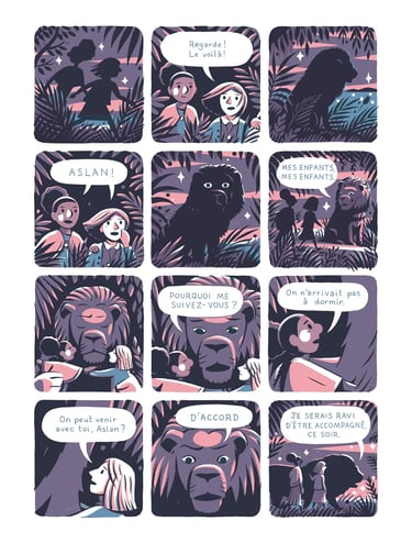 C’est précisément entre les lignes que McNaught construit la majeure partie de sa narration. Les non-dits, les regards détournés, les silences prolongés, les lieux familiers qui semblent soudain trop petits, tout cela traduit une forme de mélancolie douce-amère. Le fait que David incarne Aslan n’est pas anodin : comme le lion de Narnia, il est à la fois puissant et fragile, porteur d’un monde intérieur en construction. La BD parle de grandir, mais surtout de perdre quelque chose sans savoir encore quoi. Le hors-champ raconte autant que les cases.