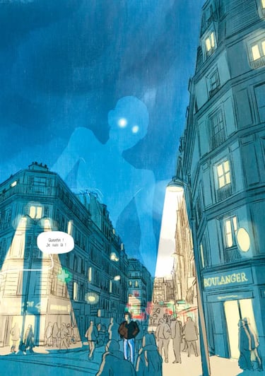 Le récit s'ouvre sur une image forte : une créature bleue, allégorie de l'anxiété, qui observe le protagoniste depuis sa cour. À partir de cette vision, Quentin remonte le fil de ses souvenirs pour identifier les racines de son mal-être. C'est une enquête intérieure qui lie santé mentale, poids des normes sociales et construction de l'identité sexuelle.
